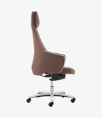 • Luxurious Design: The Azione chair features a high-back design with premium brown leather upholstery, complemented by sleek chrome accents on the armrests, adding a touch of elegance to any executive office.